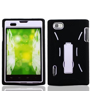 Black White Double Layer Kickstand Hard Hybrid Gel Case Cover For LG Intuition / Optimus Vu VS950